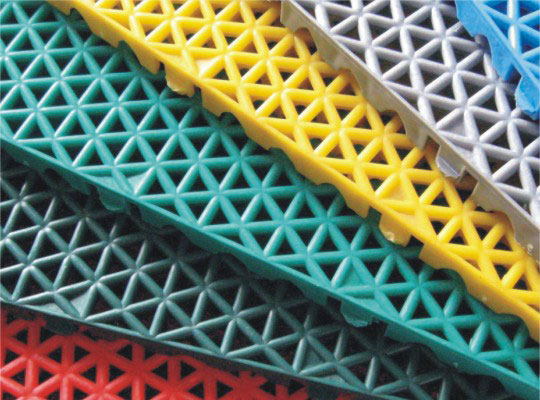 1、悬浮拼接地板表面为格纹孔洞状,可以在下雨天迅速排水,快速恢复地板干燥,正常使用;